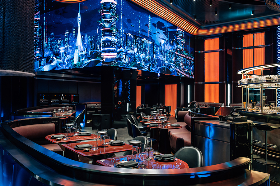 Even the Ramen Carbonara, a signature of the house, speaks to the delicate dialogue between code and creativity – a dish both familiar and futuristic. Step inside, and the experience unfolds like stepping into another dimension. Massive LED screens ripple with living light. Holograms shift and morph as the room breathes in rhythm with sound and movement. Colors change with every course, reacting to the energy of the evening. Every flicker of motion and pulse of light is orchestrated by a custom AI brain, making WooHoo one of the most technologically advanced dining spaces on Earth. The room does not simply host the meal – it becomes part of it.